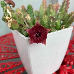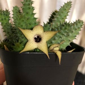 スタペリア ハイブリッド(ヒルスタ×ギガンティア) 花弁が反って…あまりにも臭くてお花カット✂️蕾もカット✂️しちゃいました。 (出かけていたので部屋は締切…耐えられず可哀想でしたが我慢の限界……ヴヴヴ)