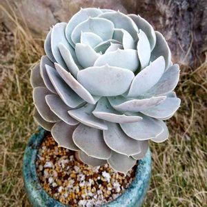 こんばんは🌆 息子が素焼き鉢を蹴飛ばし パッカン🤯してしまって植替え中断し、とりあえず植替え予定のグラウクムを置いておいたら 息子が石を添えてくれてました🤗 …優し♥