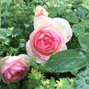 雨上がりの朝 ピェール・ドゥロンサールさんは大きくてなんですが雨上がりはちょっと首が折れてしまって…😊🥺 まあ、バラ用柔らかバンドを使って…♥️🧡 キレイが続いて欲しいなぁ〜