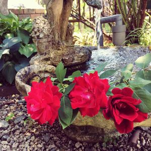 台風にも負けなかった、赤バラ達 元気に次々咲いています。