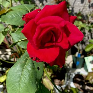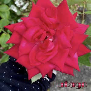 こんばんは 今日もお疲れ様でした。 今宵のバラはUtage (宴)です。 耐暑性に優れ、鮮やかな赤色を保ったまま、ワンコハウス裏で咲いてくれています。 アクセントになって。