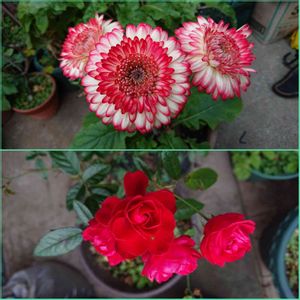 エキナセア三姉妹。昨年の株から立ち上がりました。少し小振りですね。植え替えてあげなければ❗。なんて可愛い❣️‼️。 訂正❗:ガーベラ三姉妹。でした。ごめんなさい🙇♀️💦💦。