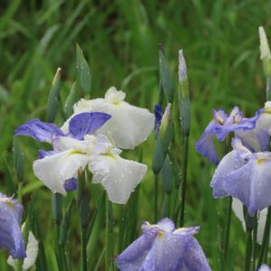 雨の菖蒲畑から ☆1 青い菖蒲と白い菖蒲 ☆2 ポンテデリアとミツバチと モンシロチョウとはなぐも ☆3 菖蒲とモンシロチョウ ☆4 モンシロチョウと タネツケバナ属のイヌガラシ? ☆5 ポンテデリアとモンシロチョウ 2025.6.3