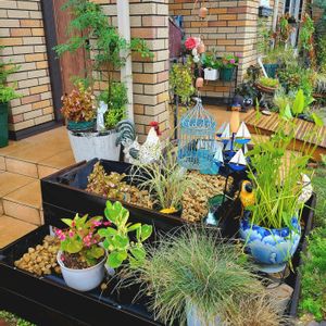 夏に作った玄関の階段花壇、日除けシェードがあっても暑すぎ&雨が多くて苗が植えられず、ずっとポットのまま仮植えで過ごしてもらっていたのですが、雨も少なくなってきたので、今のうちに!と先ほど植え込んできました。先に植えた人達はグイグイ大きくなってくれてます。避難していた🦆ファミリーもやっと復活させられました。改めてよろしく。