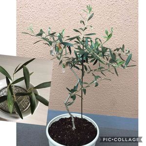 背丈60センチ🌱 1年程前に自分の中の見切り品ブームでつい買ってしまったけど、種類は何でしょうか?🌱ご存知の方よろしくお願いします🙇♀️🌱 急に可愛くなってきてオリーブに目覚めそうです、笑🌱 植え替えしました🌱 実を葡萄のように袋掛けしてます、笑🌱 取り木しようとしてます🌱 挿し穂作ってメネデールにつけました🌱