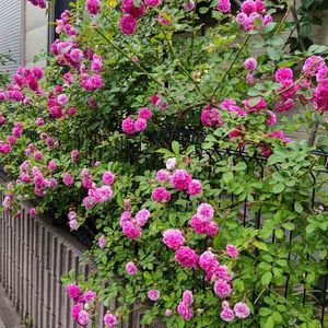 おはよう(*>∀<*)ノ ケイコズドリーム満開です🎵 咲き始めは紫がかったピンクで、だんだん色が落ちて薄くなってくのでグラデーションがキュート💕 めっちゃ広がってきてこのままフェンス1面埋め尽くすのもアリかなぁ 💕
