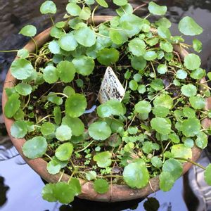 ヤブランの葉っぱの間からウォーターマッシュルームの丸い葉っぱがひょっこり😳 池から逃げ出し根付いたらしい😂 こらこら!