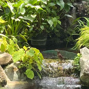 ひとつ前の投稿の続き ムクドリさん 下の池に1度は飛び込み水浴びしました ちょっと飛び上がるのが大変そうだったので、2度目は上の池に…😱まってまって💦 その見ている辺りにはオタマジャクシがいるからやめて〜 っと部屋の中から言っても聞こえるはずも、聞こえても分かるはずもなく😂 池に飛び込んですぐに出てきて私の気配に驚いたのか飛び立って行きました オタマちゃん おそらく無事な様です😮💨焦った💦