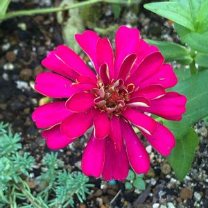 百日草 今日のお花 去年の種を蒔きそびれて、遅く蒔いたので、まだ草丈15センチくらいだけど鮮やかに咲きました💕