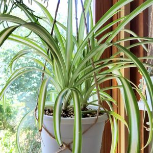 今日のお花のオリヅルラン✨ 実家から分けてもらって窓辺で育てて数年… ずっと植え替えをしていなかったので、葉色も悪くはかなげ🥲…だったのが、春に植え替えしてお水もしっかりあげるようにしたら元気になりました😆 前に一度、お花が咲いたこともあったのですが、植え替え前は弱ってしまって😅 また咲いてくれるといいな✨🥰