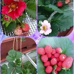 いちごの日🍓なんだ😆 花いちごガザーナ🍓 春に買って、なんか実がなったんだけど、食べて良いものなのか❓ 考え中😅