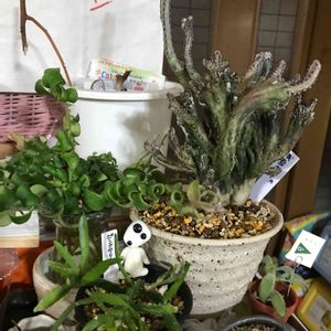 渋いヤツらは旦那の多肉🌱 和名系やハオやサボがたくさん🌵 水やりも植替えも自分でやっとります😊 私の好みではないけど、よく見るとカッコいい👍