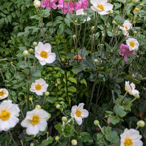 ♡ 藍さんガーデン の仲間たち ♡ ♣ 秋明菊(白)と ノーゼンカズラ(ピンク)のコラボ