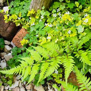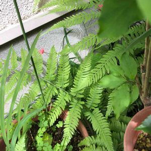 こんばんは😊 今日は、シダの日ですね。 コロナのせいで…ずっとお会い出来なかった 山野草の師匠に 会いに行って来ました🪴 で…この子を頂いてきました。 ただのイヌワラビでは無いです。 斑入りで獅子葉🌿🌿🌿💕 大きくなったら めっちゃ凄い事になるそうです🤣🤣🤣 (同居してる丸い葉っぱはホタルブクロくんです😁)