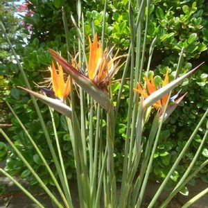 ストレチアのノンリーフが咲きました😊 5月以来の開花。 今回はオレンジ🍊のトサカみたいなのが少ないです。 来年は植え替えてしっかり肥料をやりましょうか。 早めに株分けしないと手がつけられなくなりますしね😅 根っこが毎回抜けなくなります😓