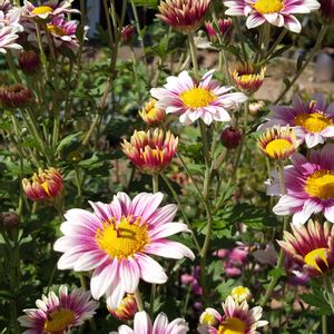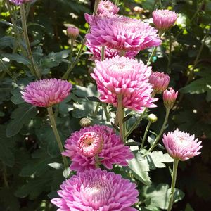 母の畑の菊その2 お日様の光で、ピンク色がとても美しかったです。 昔から菊を育てています。