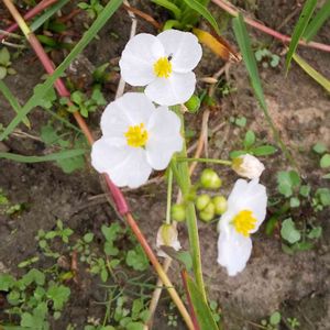 刈り取った水田に、可憐に咲いているオモダカです。 葉っぱの先が尖って(槍)を連想させます、勝ち草という印象で、武士の家紋に好まれていたそうです。