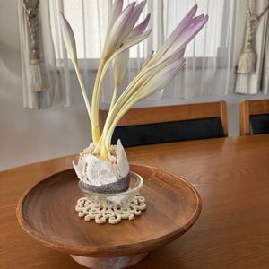 ♡コルチカム球根 ♡サフラン球根 水無し、土無しでも゙育つコルチカムさんはお目覚めし始めましたぁ~😁 サフランさんはまだまだのようです😟 お皿の上できれいなお花🩷🩷🩷💜💜💜待ってま〜す🤗