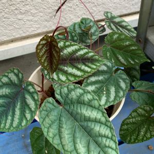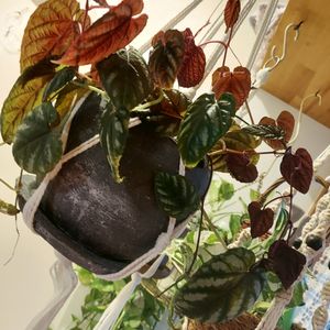 おはようございます☀️ シッサス ディスカラーです。 秋らしい色の葉っぱが好きです❤️ ツルが伸びて来たので最近吊るし始めました✌️ 水やりついでにパチリ🤳