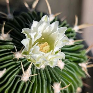 おはようございます🌿 エキノフォスロカクタス・縮玉です 波打つような稜がすき 生長ストップ中なのが気がかり😶 今日ものんきに☕