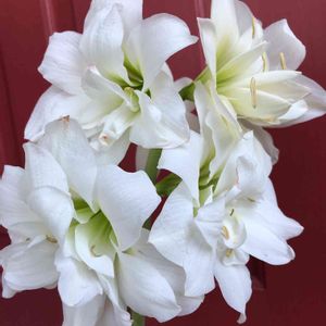 アマリリスはまた赤い扉の前でご紹介しましょう😌これは2本同時に茎が出て、一緒に咲きました。名前はアラスカ。またダジャレを言いたくなるような名前💦 アマリリス=ヒッペアストラム(学名)だそうです。 アマリリスって呼びたいけど、球根にはヒッペアストラムと記載されてたので、そちらの名称も記載しておきます✒︎ 赤もいいけど、白もいいね😊