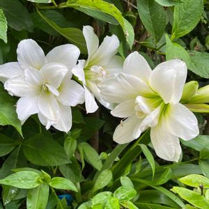 ☔今日も雨 ①悪天候の中、リラが咲きました。 お花が傷むので軒下へ。 ②ギヨーNo.1(ラ・プレミエール) もうすぐ開きそう!まん丸です🍑 ③万葉咲きました🧡 ④八重咲きアマリリス ヒッペアストラム・アラスカ 透明感があって綺麗です💚🤍💚 🏷️ヒッペアストラム アラスカ 🏷️雨の日 🏷️今日のお庭
