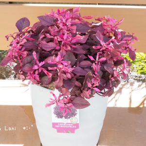 おはようございます(*ˊᗜˋ*) PW. カラーリーフ アルテルナンテラ リトルロマンスさん🪴 気温が下がり 葉色がお花みたいにパープルに 変色してとっても可愛い💕 鉢周りを回るく整えおめかし しました🥰 寒さに弱いようなので 日中でも気温の低い日は 念の為玄関に取り込んでいます😊 6号鉢に1株で植えています