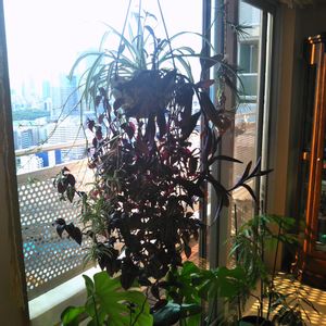 トラディスカンティア・ゼブリナ、紫御殿、オリヅルランの寄せ植え吊り鉢。巨大化して写真撮れなくなってきた。