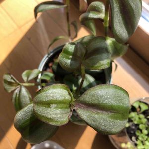 色に惹かれて✨お迎え 別名、シマムラサキツユクサ ゼブリナ属だったが、セブリナ属はすべてトラデスカンチア属に変わったらしい 職場から自転車で園芸店ちかいよ!と 教えてもらって、仕事終わりにチャリ。 3キロくらい走ったので近くなかった。 この日、5キロ以上走った気がする。