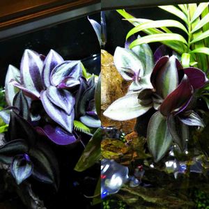 ちょっとわかりにくいかもですが、同じ日に買ったトラデスカンチアを、左は水槽のLEDの下に置いていたもの、右は照明が直接当たっていなかったものです。 約1ヶ月でかなり葉の色が違ってきていました。