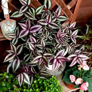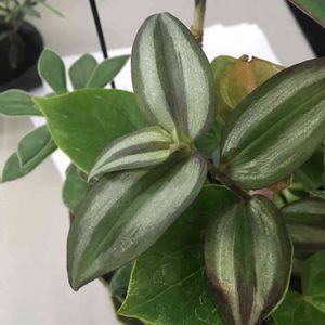 ダイソー購入です。 観葉植物トラジスカンチアと書いてあります。 ラメがキレイです。 更に細かい種類があれば教えて下さい。 宜しくお願い致します!