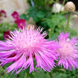 🌃6月になりました。外からはシトシト💧🏠️雨音が聞こえてます。 🩷、🍀花友さんから頂いた「セントーレア・デルバータ」開花 🔍️キク科 宿根草(耐寒性多年草)冬季落葉種 💜🤍ニオイバンマツリ、雨の中でも負けない香り 🤍コンボルブルス、シルバーの葉に白い花。晴れ☀の日には爽やか🍃🤍🌿 💜クレマチス6株セット、真ん中が、開きかけ、⭐️星形…📱💕 💜🍀花友さんから頂いた挿し穂のクレマチスも 咲きだしました。 クレマチス「春姫」を下げて 💜ちゃんと、🩷「リトル・ネル」。 ご近所さんの👀🚶❣️目に止まる場所へと交代にしました☺️