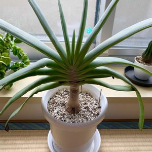 クマラ プリカティリス ススキノキ科 クマラ属 今日も暑いですね。 遮光はしていませんが、クマラは元気です。葉が肉厚でスベスベしたところが好きな種類です。 購入から2年弱…幹立ちへの道のりは長そうです。