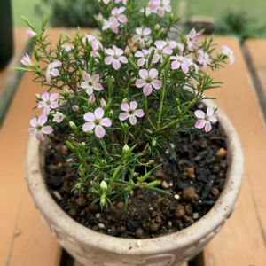 お店で小さな小さなピンクの花が咲いているのを見て、一目惚れしてしまいました✨ コレオネマのピンクファウンテン🩷葉に触れるとほのかな香りがします ✨ まだまだ小さな苗なので、4号鉢に植えました✨少しずつ少しずつ大きくなっていくのを楽しみに育てたいミカン科の木です🌲 地植えにすると90センチから2メートルにまで育つらしいので、鉢でしばらく育てるつもりです。 小さな盆栽苗くらいの大きさの苗なので、目につくところに置いて、花を楽しみたいです♪