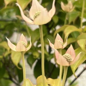 "ヤマボウシ"と思ってパシャリ📱 検索かけるとどうしても"ハナミズキ"って出るんです🤭 でも、可愛いからイイカナ〜⁈ " ヤマボウシ"ですよネ〜⁈