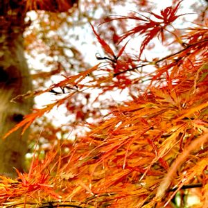 紅葉の終盤 秋から冬へ 時間が流れます 枝垂れモミジは まるでしぶきをあげる小さな滝のよう