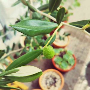 こちらは、弱っていたため安売りしていた苗を駄目もとで買ってきたオリーブの実 元気になって無事成長中