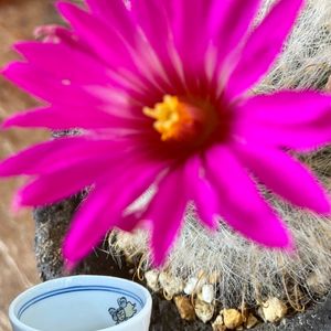 またまた咲いた🩷 ( ˙ˡ̼̮˙ و(و"♪( ˙ˡ̼̮˙ و(و"♪ ( ˙ˡ̼̮˙ و(و"♪ pic① Mammillaria guelzowiana マミラリア 麗晃殿 親株に4つ、子株から1つ 相変わらず目に眩しい、強烈なピンクで 目が( ³ω³)💦 今年も咲いた🩷 ( ˙ˡ̼̮˙ و(و"♪( ˙ˡ̼̮˙ و(و"♪ ( ˙ˡ̼̮˙ و(و"♪ pic② Mammillaria Schumannii マミラリア 蓬莱宮 昨日、咲いたっぽい💦出掛けてて見逃した😓 マミラリアにしては大きな花が咲くと思ってたけど、以前はバルチェラ属だったらしい🤔 花の向こうで🍿を食べてるスヌーピーで 🏷毎月2日はスヌーピーの日 麗晃殿と蓬莱宮のピンクの花で 🏷ピンクワールドへ ようこそ 🏷月曜日は元気色の花 参加させていただきます(⋆ᴗ͈ˬᴗ͈)” pic③ 植物じゃないけど購入記録✍️ 昨日行ったイベント「しょくぶつとてしごと」で 買ったピアス