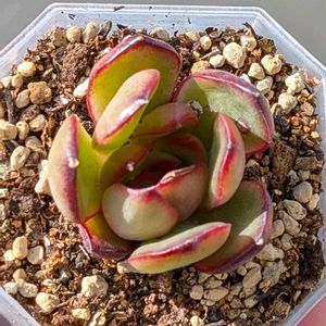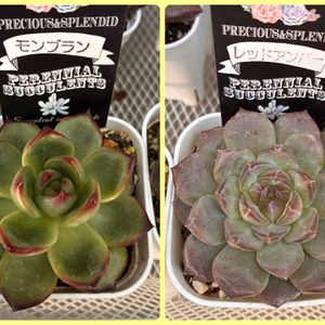 赤いモンブランと栗のようなレッドアンバー🤔 23℃/15℃ 夕方から雨でした☔️ この二つの多肉、名前逆さなんじゃないかと疑ったんだけど、あってるみたい… 二つともハニーミントさんから買った苗なんですが、写真ではレッドアンバーはもっとピンクだったかな。 今は真ん中が栗のような色でぎゅっとしまってます。 モンブランは縁が赤くて可愛い。 これから紅葉したらどう変わるか楽しみだな😊