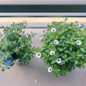 こんばんは 今日は一日雨☔️でした エボルブルスの白い花がやっと咲きました ツーショット💙