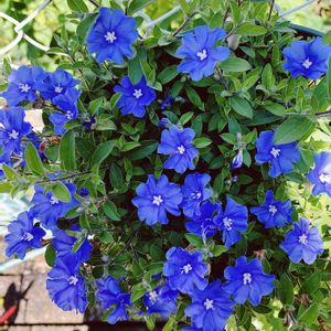 エボルブルス ブルーコーラル&サマースノー ゚・*:.。. .。.:*・゜ 昨日の様子です*:.。.(*ˆ﹀ˆ*).。.:* なかなか一緒咲いてくれなくて😅 ブルーがまとまって咲いたので📸 週間天気が☂️マークばかりに😭 台風の進路の方お気をつけください。 離れてても雨が心配なので油断できませんね。 我が家のお花は雨が降る前に軒下へ🏠 避難完了です🤗