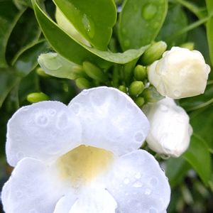 雨で生き生き* 綺麗に咲いてました~ Pandorea パンドレア 和名 ソケイノウゼン 葉が南天に似てるのでナンテンソケイとも オーストラリア マレーシア ニューギニア ニューカレドニア 原産