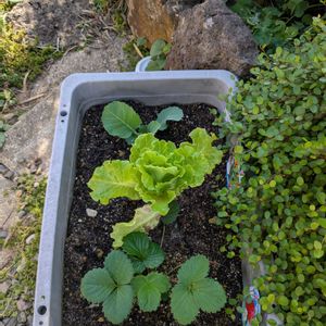 レタス、キャベツ、イチゴ苗、 野菜を食べたいのか?果物食べたいのか?欲張りなコンテナが〜でん😅