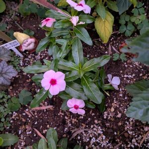 日々草、定植した時は、暑かった!のちに段々と寒くなり花の開花が心配でした~要約可愛らしく咲き始めました。