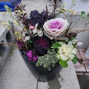 葉牡丹の寄せ植えを作りました🤗 たくさん詰め込めるから 楽しかったꕀ⋆🎶 2枚目の寄せ植えはお世話になった方に プレゼント用です- ̀͏̗🎁 ́͏̖-