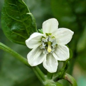 家庭菜園🫑 ジャンボピーマン🫑🫑 4月17日種蒔き 6月2日植え付け(花壇畑・プランター) 6月26日支柱たてる [今日の様子🫑🫑] やっと🎶🎶 花が咲き出した🌸 小さい実がなってる🫑 収穫が楽しみです☺️🎶🎶🫑