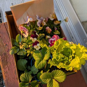ビオラ、イチゴ苗、レタス、キャベツ苗、チューリップの球根、ヒヤシンス🪻球根、 さて?ちゃんと育っかなぁ~🤔