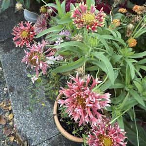 今日はお天気も良く涼しかったので 植え込みや寄せ植えを作ってみました😊 腰痛確定デス😅 1⃣早くもクリスマス仕様🎅 2️⃣ピンクのシクラメン寄せ植え🩷 3️⃣大好きホイップミルク🤍 4️⃣ピンクのガーベラちゃん🩷