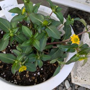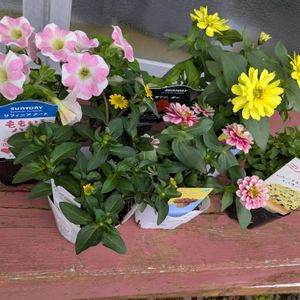 ビオラと入れ替えました。八重咲き百日草、黄色とピンク🩷