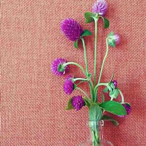 げんきの郷で買った千日紅🌼 少ししおれてきたけど、長持ち☀ ぽんぽんがかわいいです😊 花言葉は 色あせぬ愛 らしい